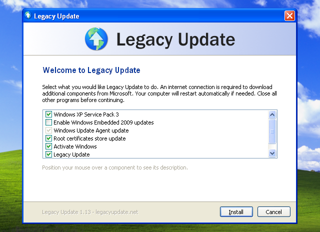 | Windows XP users: You may need to follow the workaround here to run Legacy Update. | |